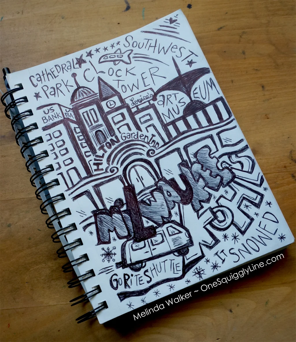 Here's what I do on airplanes - I draw! I was in Milwaukee for a job a few weeks ago and created this visual summary on my way back. Looks like I managed to see quite a bit in the 36 or so hours I was there! The one disadvantage of working in black and white? I couldn't capture the beautiful sunrise!